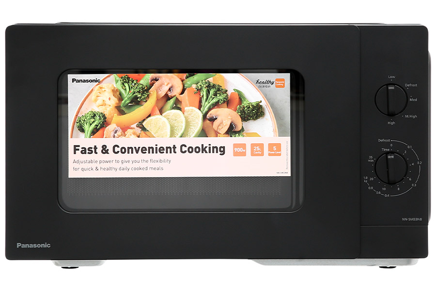 - Với công suất vi sóng tối đa 900W, được chia làm 5 mức, lò vi sóng Panasonic này giúp nấu, hâm nóng, rã đông nhanh chóng.