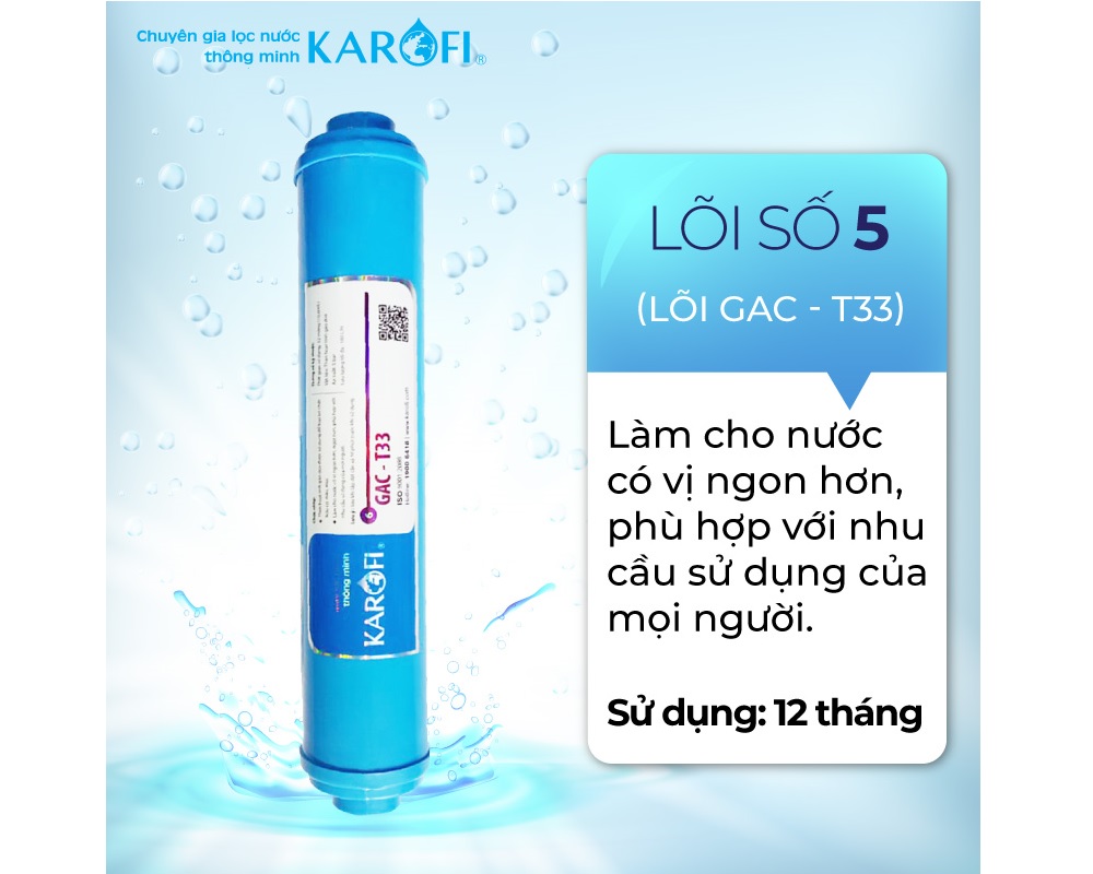 Thông số kỹ thuật: Lõi lọc nước số 5 Karofi T33 - GAC ( Lõi than hoạt tính)