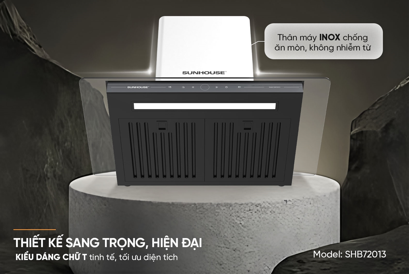 Máy hút mùi ngày nay không đơn thuần chỉ là một thiết bị gia dụng mà còn là một món đồ nội thất tôn lên vẻ đẹp tinh tế, sang trọng trong căn bếp nhà bạn. Với cảm biến cử chỉ thông minh, máy hút mùi chữ T SUNHOUSE SHB72013 mang lại sự tiện nghi và hiệu quả tối ưu, giúp người dùng dễ dàng thao tác mà còn tăng thêm vẻ đẹp tinh tế, hiện đại cho không gian bếp. Thân máy được chế tạo từ chất liệu inox cao cấp, giúp thiết bị luôn bền bỉ và sáng bóng theo thời gian. Đặc biệt được trang bị động cơ mạnh mẽ, nên dù ở chế độ nào thì máy vẫn vận hành êm ái, mang lại sự yên tĩnh, thoải mái cho các gia đình mỗi lần vào bếp.