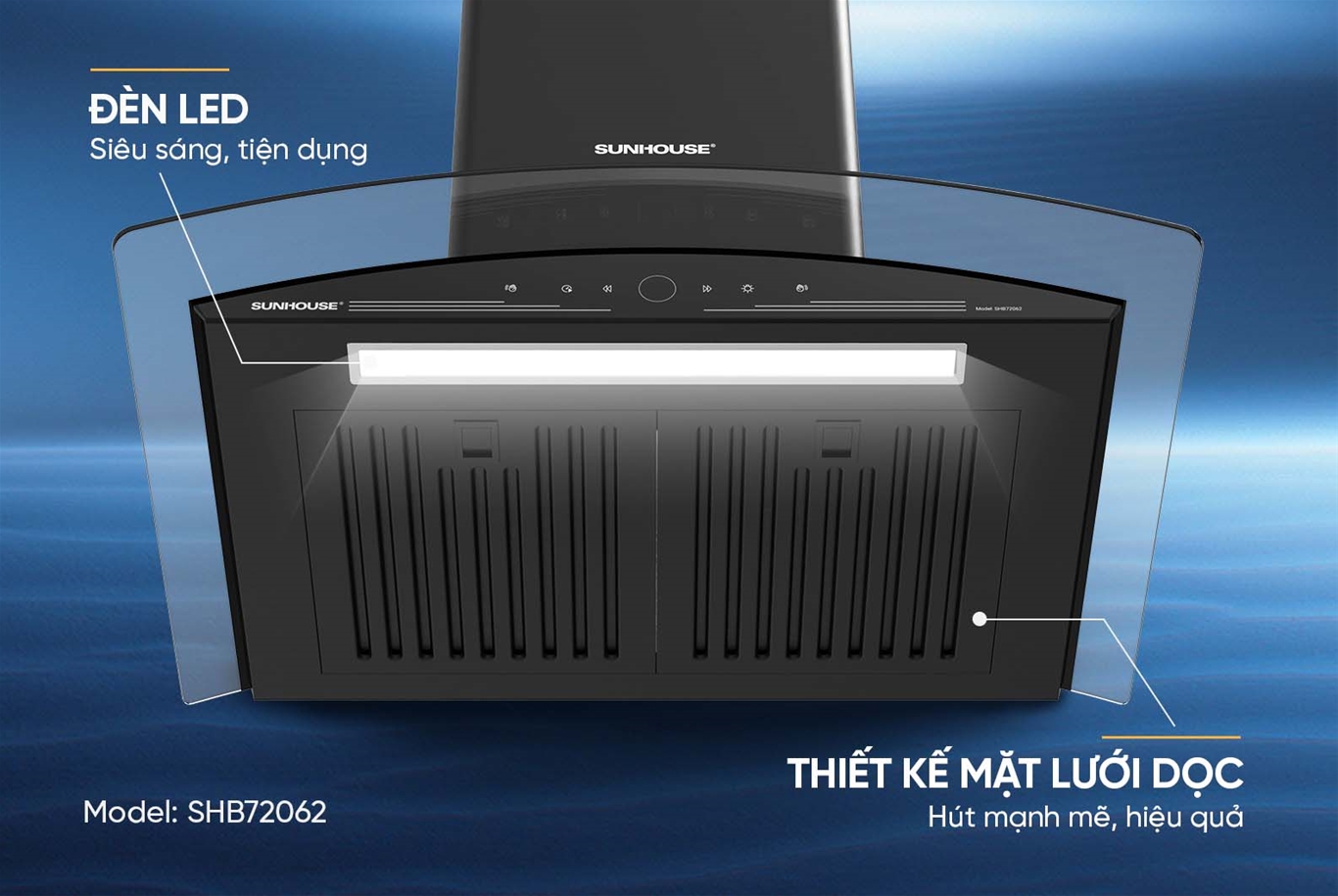 Máy hút mùi kính cong SUNHOUSE SHB72062 có công suất 750m³ /h, 3 tốc độ hút cho hiệu quả hút mùi tốt ưu lại tiết kiệm điện năng. Mùi dầu mỡ hay các mùi khó chịu khác trong quá trình nấu nướng sẽ nhanh chóng bị hút sạch, không ám mùi lên quần áo, các vật dụng nhà bếp hay các không gian liền kề khác (điển hình như thiết kế căn hộ chung cư).