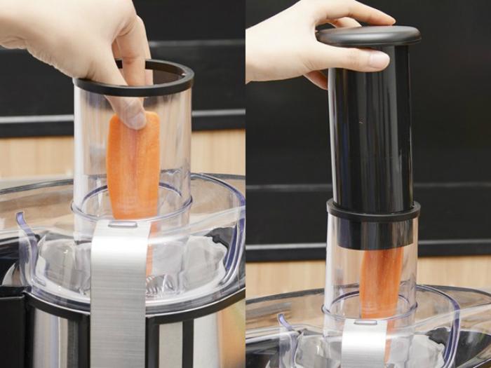 - Không nên nhồi nhét quá nhiều trái cây vào máy, máy sẽ bị quá tải và đột ngột dừng hoạt động. Bạn cũng nên hạn chế ép những loại trái cây mềm nhão như xoài, mít, mãng cầu… vì bã của trái cây sau khi ép sẽ bít hết các lỗ trên lưới lọc sẽ không cho ra nước ép.