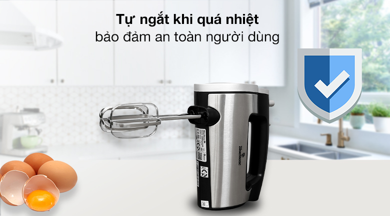 Máy có chế độ tự ngắt khi quá tải chống chập cháy hư hại, bảo vệ an toàn của người dùng, gia tăng tuổi thọ của thiết bị an toàn Máy đánh trứng Bluestone HMB-6333S