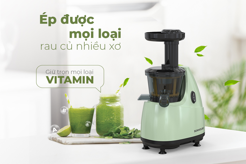Máy ép chậm SUNHOUSE SHD5501 sử dụng công nghệ ép chậm hiện đại, giúp ép kiệt bã mọi loại rau củ quả mà không sinh nhiệt trong quá trình sử dụng, giúp giữ trọn vitamin và dưỡng chất trong rau củ quả. Thành phẩm nước ép nguyên chất, màu sắc tươi sáng, thơm ngon, giàu dinh dưỡng cho cả gia đình.
