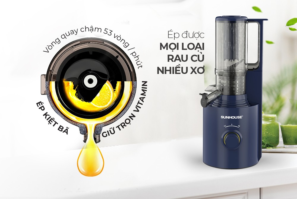 Khác với công nghệ ép ly tâm tốc độ cao thường làm phát sinh nhiệt phá vỡ cấu trúc của các chất dinh dưỡng trong hoa quả, công nghệ ép tươi trong máy ép chậm SUNHOUSE đã được nghiên cứu và chứng minh là giúp bảo toàn tối đa vitamin, khoáng chất