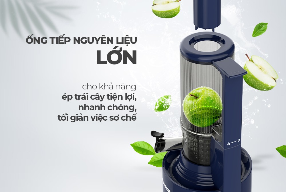 - Ống tiếp nguyên liệu lớn, ép nhanh hơn, tiết kiệm thời gian