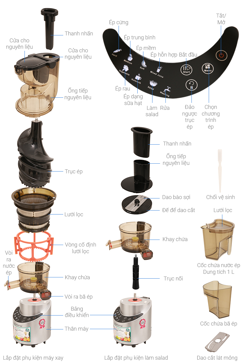 - Công nghệ ép thông minh LSTS giúp giữ lại hơn 90% lượng vitamin, trọn hương vị & màu sắc của nguyên liệu.