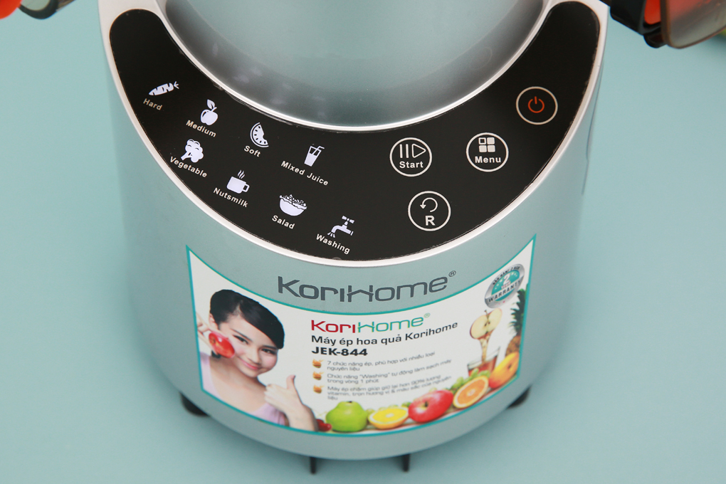 Máy ép trái cây Korihome có thiết kế đơn giản, sang trọng, chân đế chắc chắn giữ cho máy đứng vững trên mặt phẳng khi vận hành