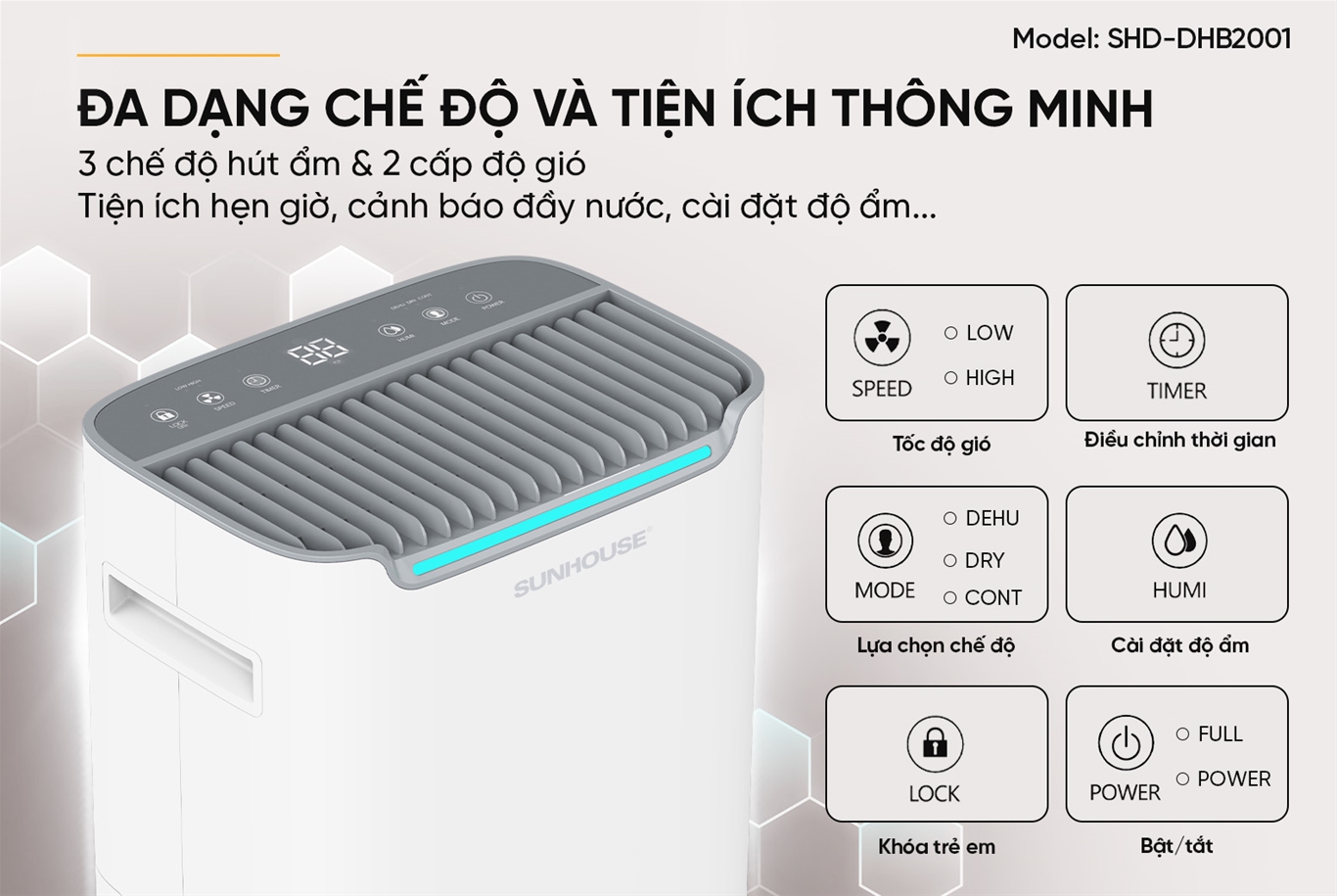 SHD-DHB2001 được trang bị 3 chế độ hút ẩm: