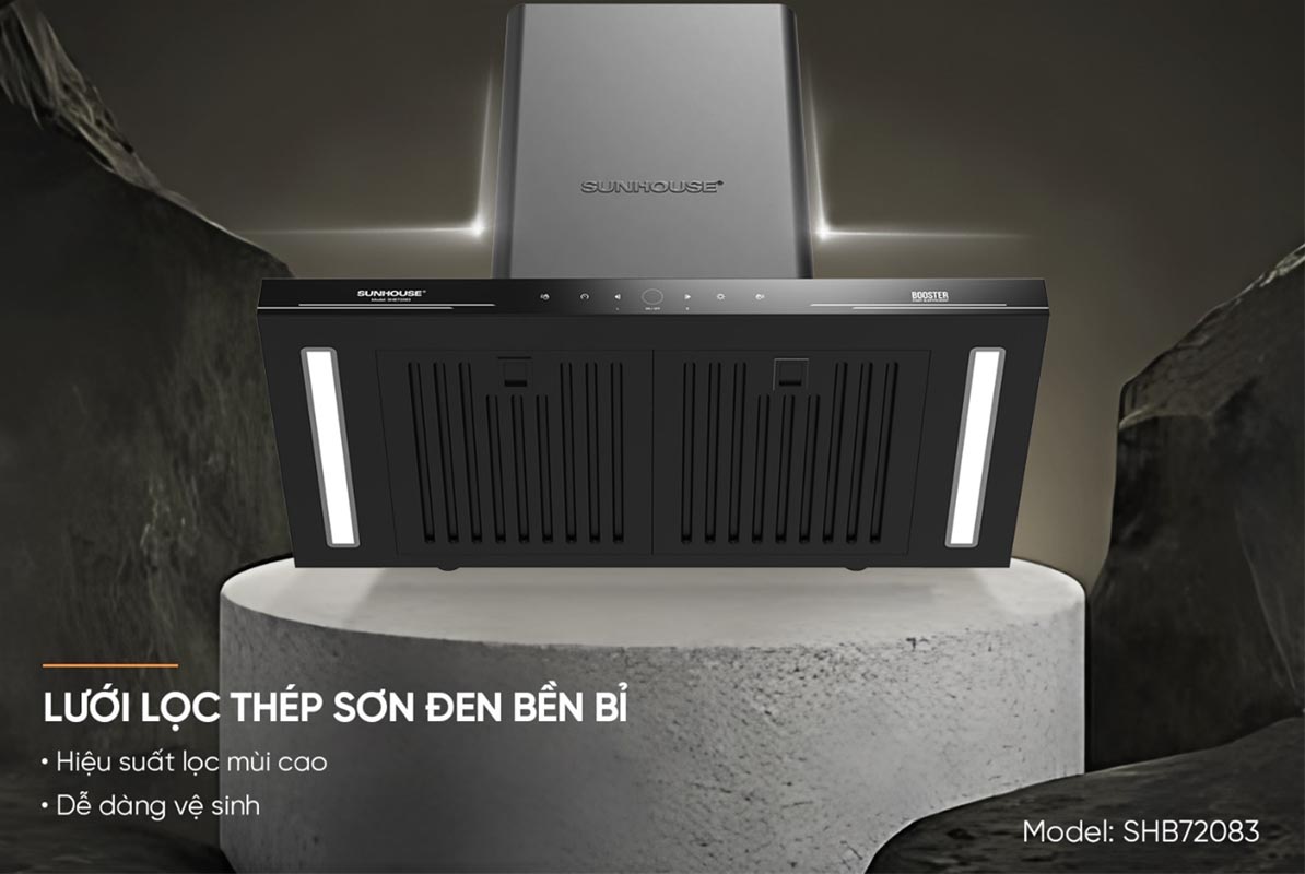 Lưới lọc bằng thép sơn đen trên máy hút mùi SUNHOUSE SHB72083 mang lại hiệu quả lọc sạch vượt trội, giúp loại bỏ triệt để dầu mỡ, bụi bẩn trong không khí trước khi được xử lý. Thiết kế đa lớp thông minh không chỉ tối ưu hóa khả năng ngăn chặn tạp chất mà còn bảo vệ động cơ bên trong, duy trì hiệu suất hoạt động ổn định trong thời gian dài.