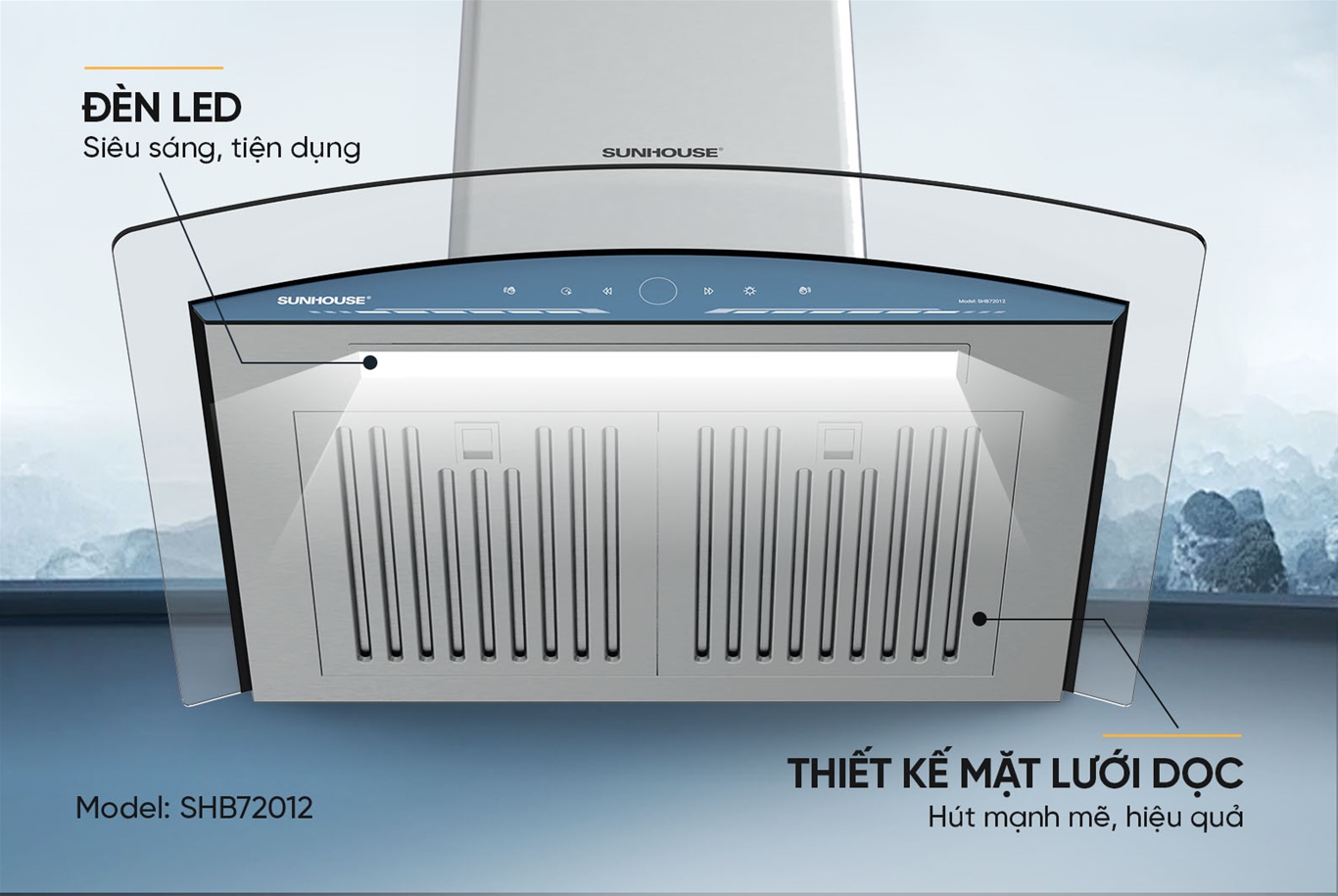 Mô hình căn hộ chung cư và nhà ống đang ngày càng phổ biến. Việc đun nấu trong không gian kín bỗng trở thành nỗi ám ảnh của các chị em nội trợ. Nhằm đem đến cho các gia đình giải pháp “Nhà sạch, bếp thoáng”, SUNHOUSE giới thiệu đến bạn sản phẩm máy hút mùi kính cong SUNHOUSE SHB72012. Với những ưu điểm như công suất hút lớn, độ ồn thấp, dễ dàng điều khiển và vệ sinh, sản phẩm sẽ giúp bạn loại bỏ hoàn toàn mọi mùi dầu mỡ, thức ăn trong quá trình nấu nướng và giữ cho không gian bếp luôn thoáng mát, trong lành.