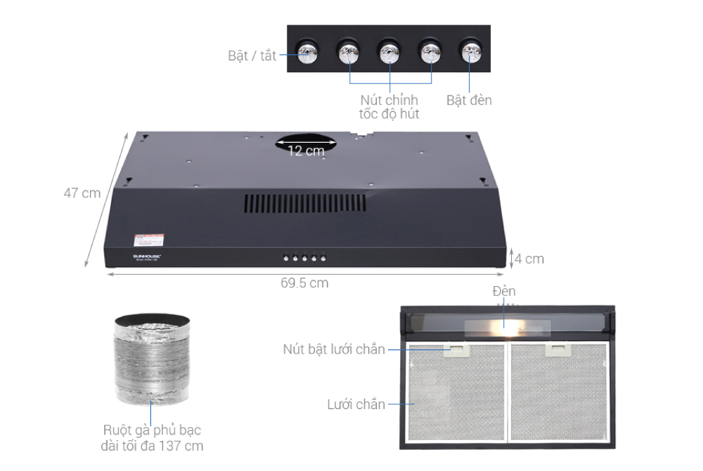 Máy trang bị 2 tấm lưới lọc bằng nhôm dễ dàng tháo lắp và vệ sinh đơn giản, sản phẩm lọc mùi tốt hơn, tuổi thọ cũng cao hơn. Bên cạnh đó, sản phẩm được thiết kế có đèn chiếu sáng công suất lớn giúp hỗ trợ quá trình nấu ăn được dễ dàng hơn.