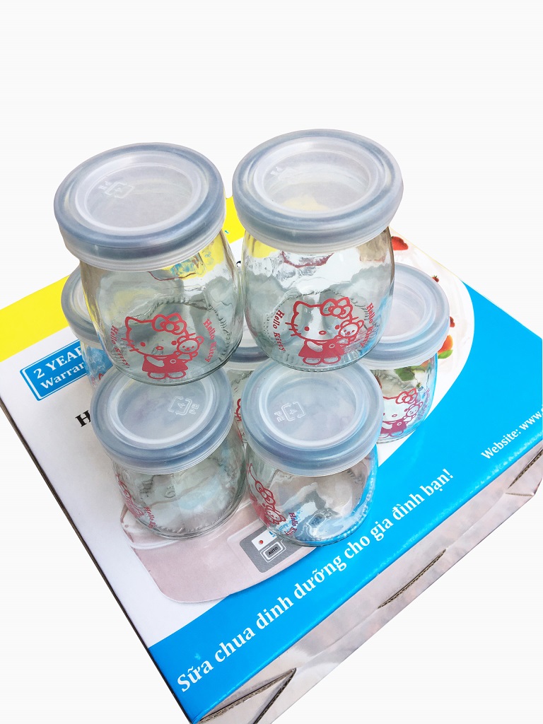 Giờ chỉ cần cho hổn hợp trên vào các cốc rồi canh thời gian độ ủ từ 5-6 tiếng trong mùa hè, với mùa đông bạn nên chỉnh 7-8 tiếng. ( tính thời gian từ lúc cắm điện)