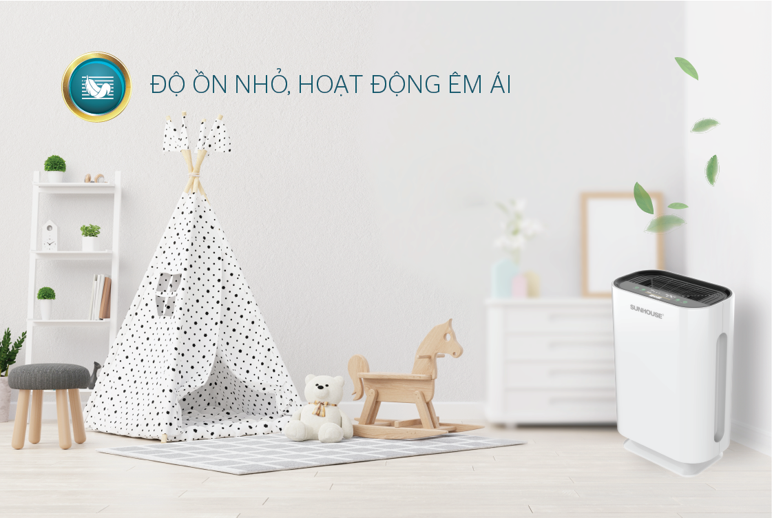 Khi hoạt động ở chế độ mạnh nhất, độ ồn của máy lọc không khí SUNHOUSE SHD-20AP9718 cũng chỉ ở mức 55dB tương đương tiếng nói chuyện hàng ngày.