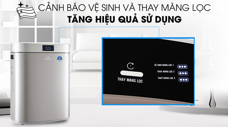 Có cảnh báo thay màng lọc giúp người dùng kịp thời thay thế, đảm bảo sản phẩm hoạt động đúng chất lượng