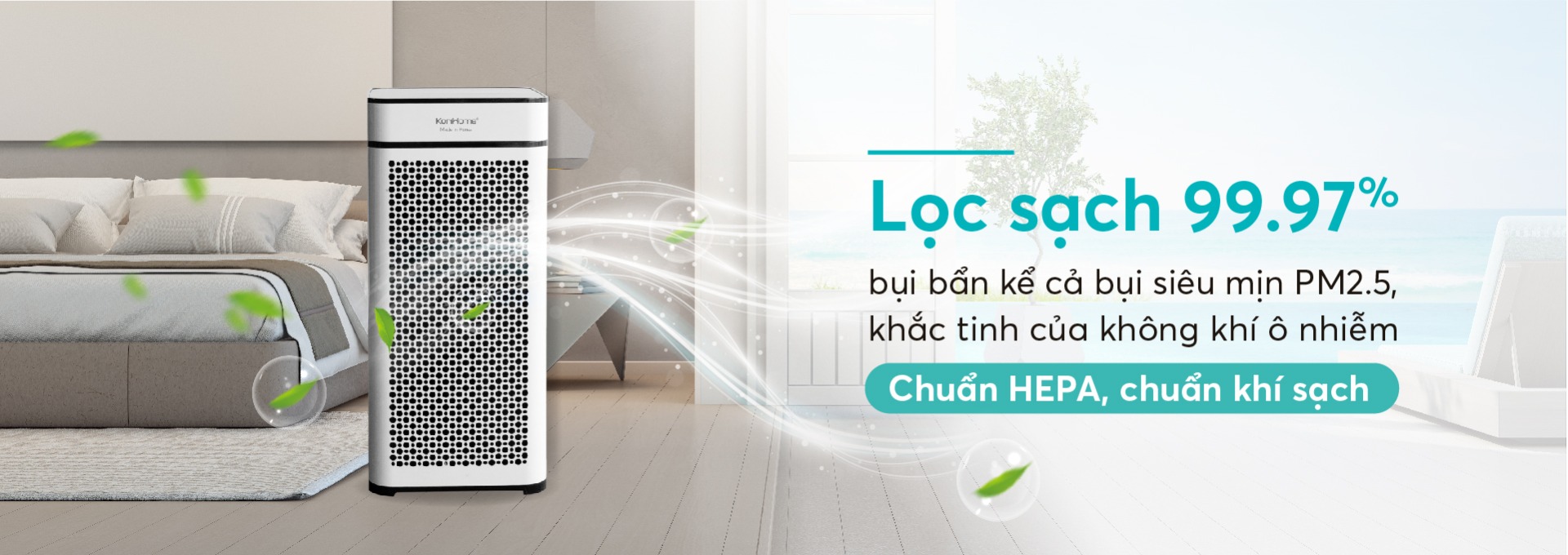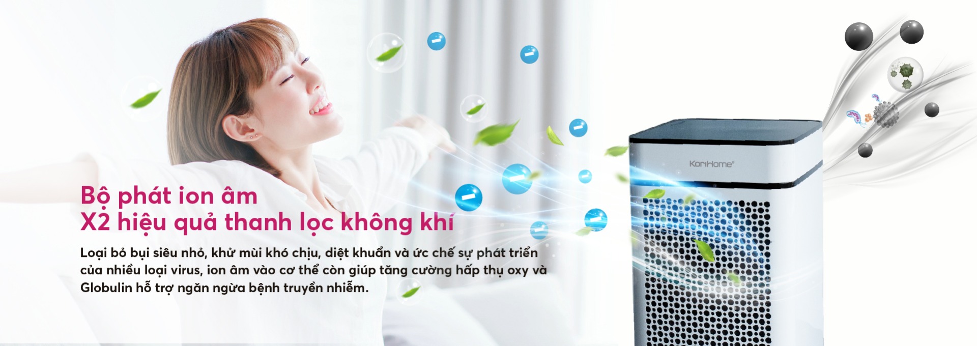 4 cấp lọc: Pre, Cacbon, HEPA, Ion âm lọc sạch không khí ô nhiễm, ức chế vi khuẩn