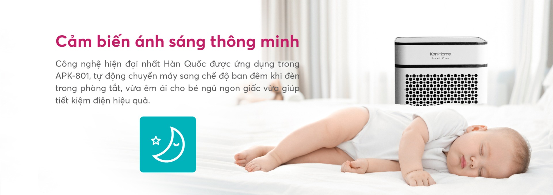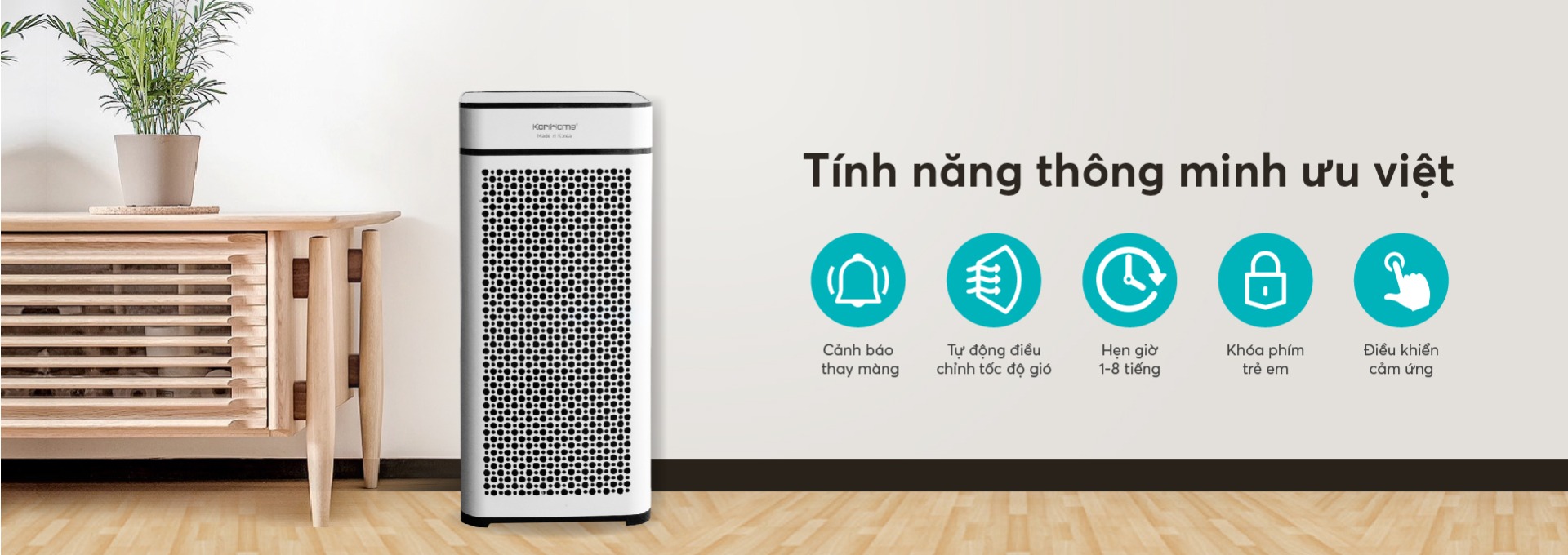 - 8 tính năng thông minh, đặc biệt: cảnh báo thay màng lọc, đèn hiển thị chất lượng không khí, chế độ cảm biến ánh sáng, tự động điều chỉnh tốc độ lọc