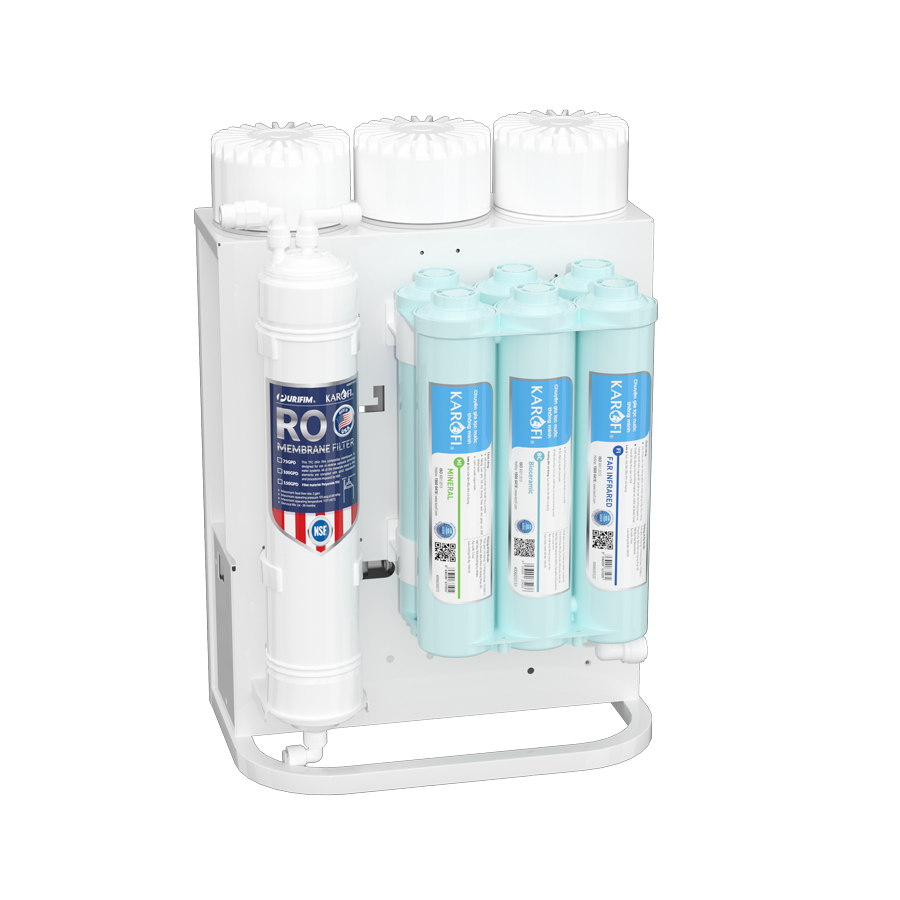 Máy lọc nước Karofi KAQ-U05 bao gồm: 3 LÕI LỌC THÔ, màng RO, 6 LÕI LỌC CHỨC NĂNG.