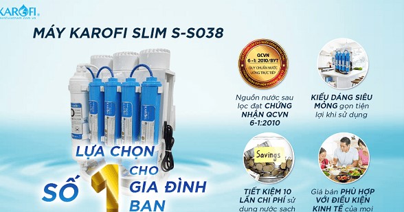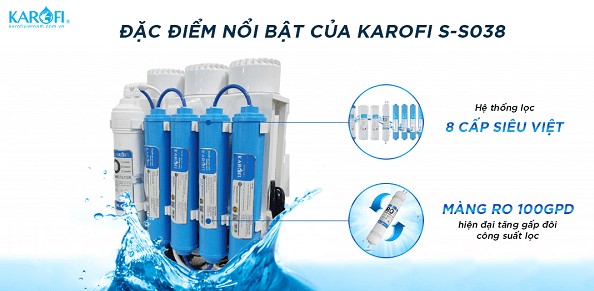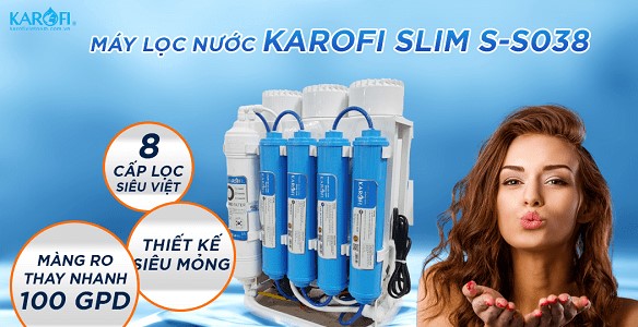 Tên sản phẩm: Máy lọc nước 8 cấp Karofi Slim S-s038