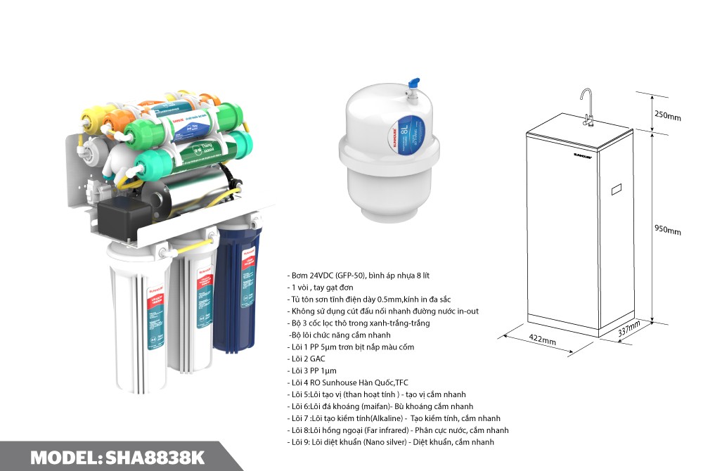 MÁY LỌC NƯỚC R.O 9 LÕI SUNHOUSE SHA8838K 4