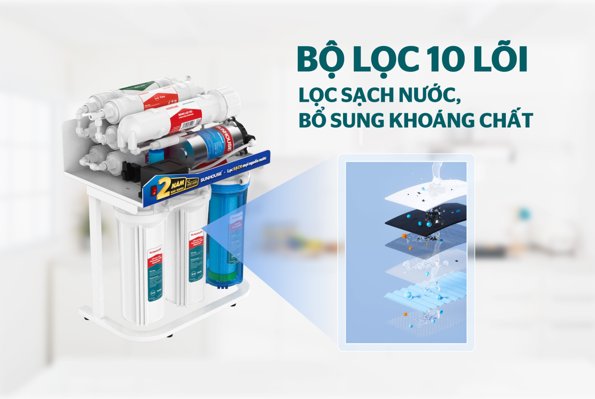 - Bộ 10 lõi, lọc sạch nước, bổ sung khoáng chất
