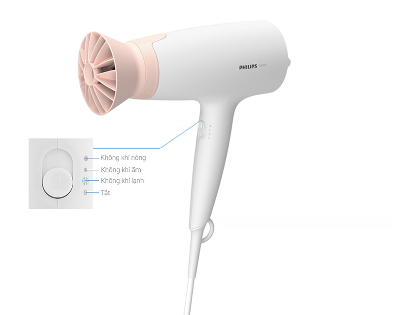 Thiết bị có 3 mức chọn nhiệt/tốc độ có thể tùy chỉnh theo nhu cầu và đối tượng sử dụng. Ví dụ, người dùng muốn sấy tóc cho trẻ nhỏ có thể chọn mức sấy mát và tốc độ trung bình hoặc thấp để tránh làm hư tổn tóc và da đầu.