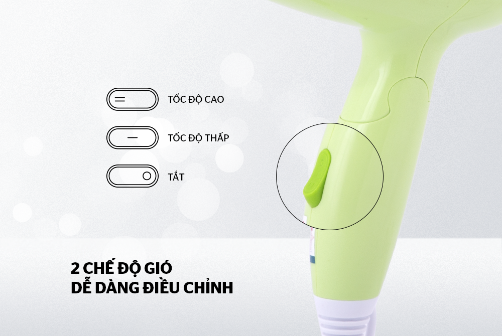 - 2 tốc độ - 2 mức nhiệt linh hoạt