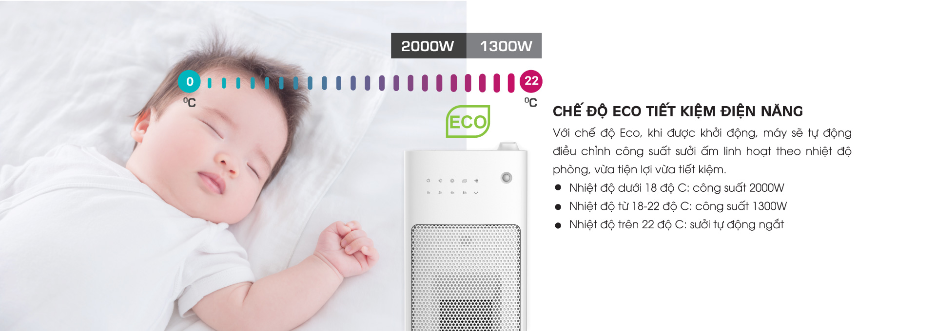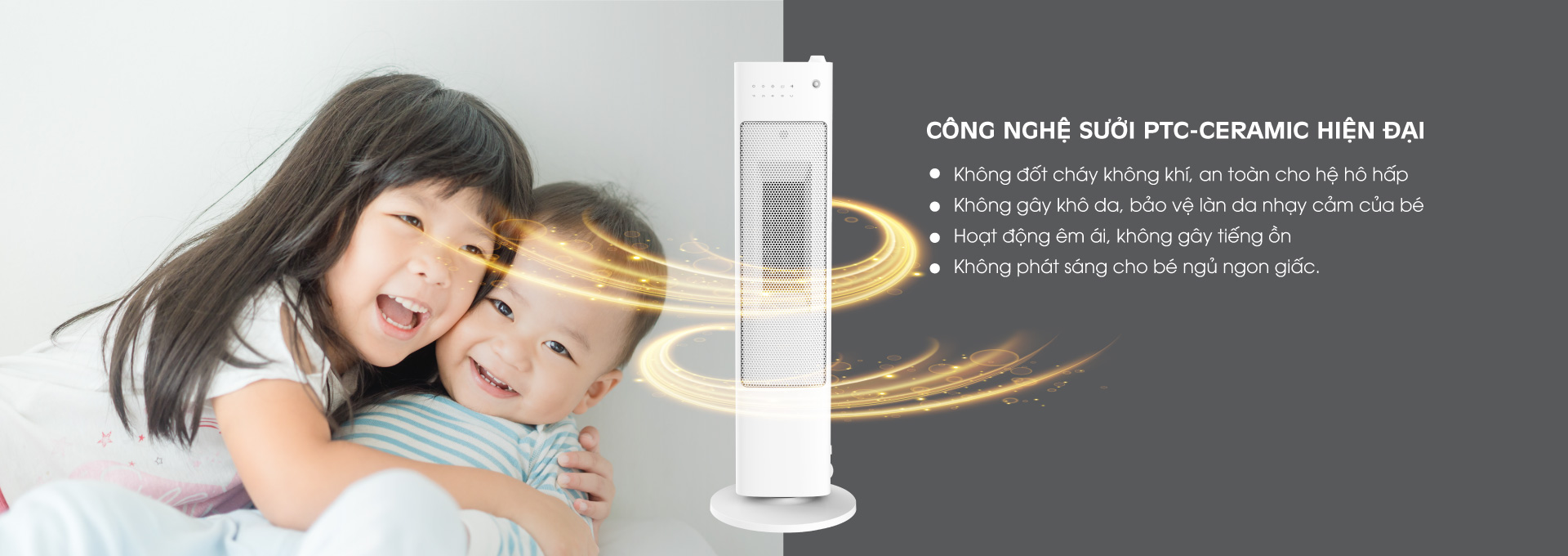 Công nghệ sưởi PTC-Ceramic không đốt cháy không khí, an toàn với trẻ nhỏ