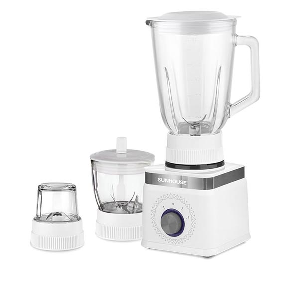 Máy xay sinh tố 3 cối SUNHOUSE SHD5582W màu trắng tinh tế, rất phù hợp với không gian căn bếp hiện đại. Máy được trang bị 3 cối xay bằng thủy tinh trong suốt siêu bền, an toàn cho sức khỏe, thích hợp để sử dụng trong gia đình 3 – 5 người.