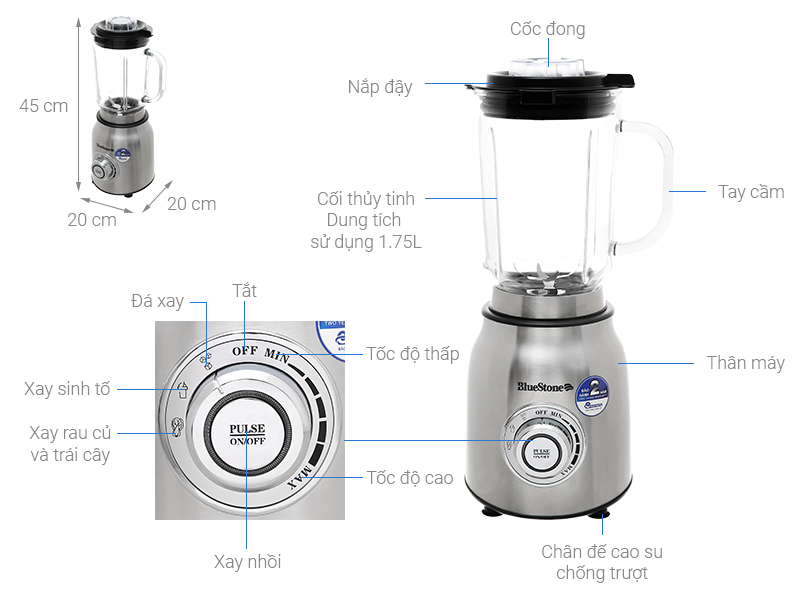 Chức năng chính: Xay được đá, Xay sinh tố, Xay rau củ
