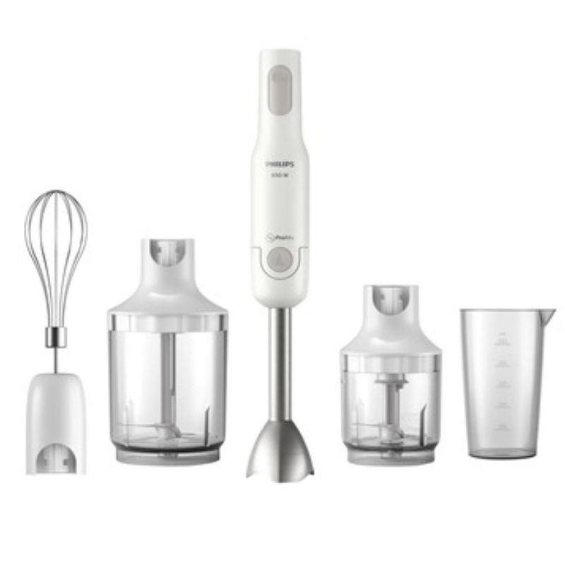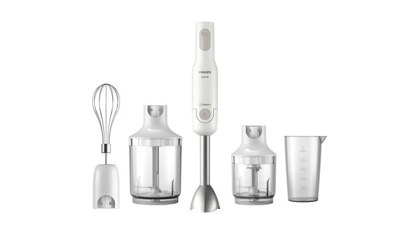 Máy Xay Sinh Tố Cầm Tay PHILIPS HR2537/00 đi kèm thân máy có thân gắn lưỡi dao, cốc xay sinh tố, que đánh trứng - kem, cối xay thịt, cối xay hạt cho bạn dễ dàng chuẩn bị bữa ăn ngon cho gia đình. Đặc biệt với thiết kế gọn nhẹ, máy cực thích hợp để dùng chế biến món ăn cho trẻ nhỏ, người độc thân, gia đình ít thành viên,...