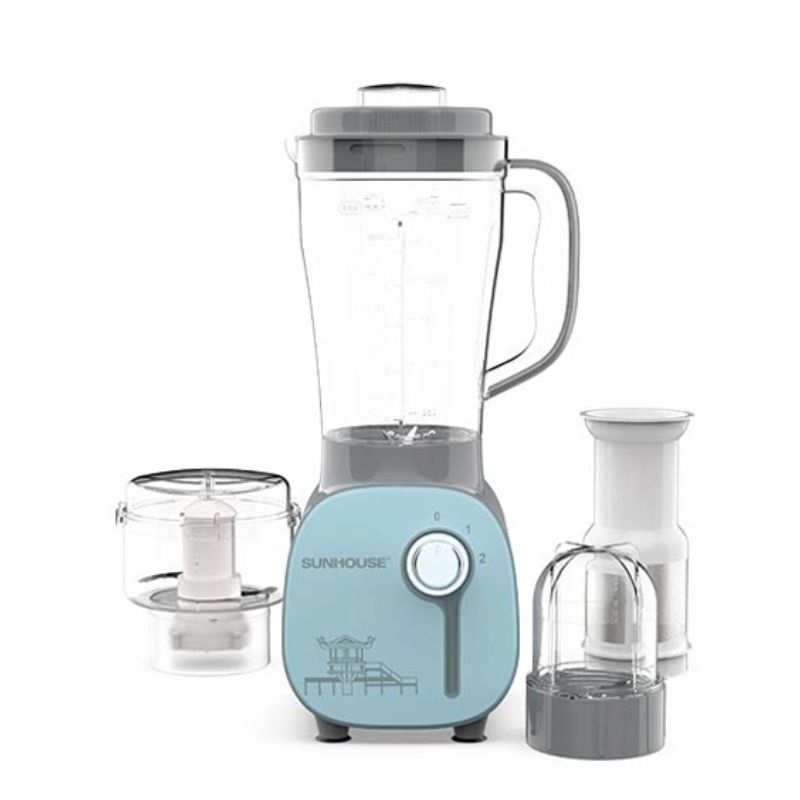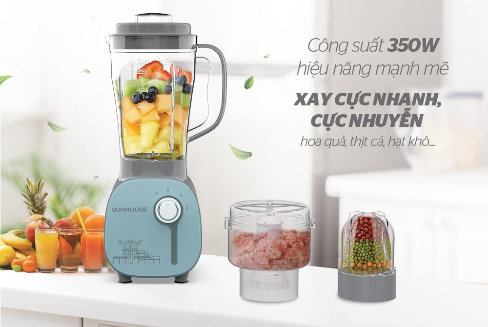Máy xay sinh tố đa năng SUNHOUSE SHD5312B có thiết kế gọn nhẹ, màu sắc trendy. Sản phẩm gồm 1 cối xay hoa quả, rau củ mềm, 1 cối xay thực phẩm khô, 1 cối xay thịt, cá, tôm… – có thể sử dụng để xay nhiều loại thực phẩm hàng ngày rất tiện lợi, giúp tiết kiệm thời gian và công sức cho người nội trợ.