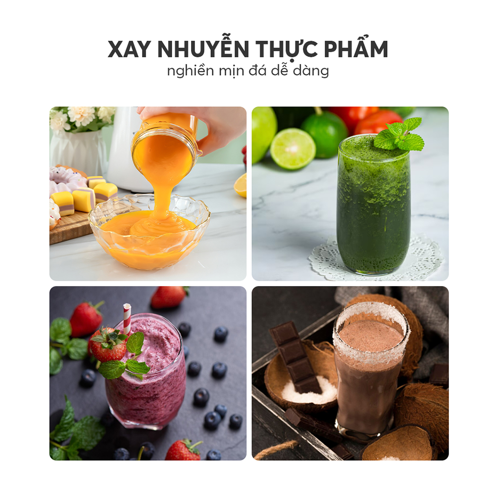 - Cối xay lớn với thiết kế đa chức năng như xay sinh tố, xay đá để tạo ra các loại đồ uống và thực phẩm khác nhau