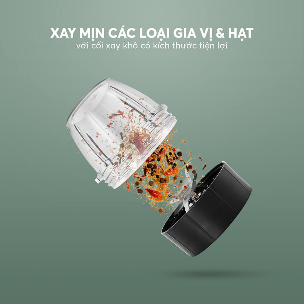 – Cối Xay Lớn: Tích hợp cối xay lớn dung tích lên tới 1000mL, cho phép người dùng chuẩn bị một lượng lớn sinh tố hoặc đồ uống mỗi lần.