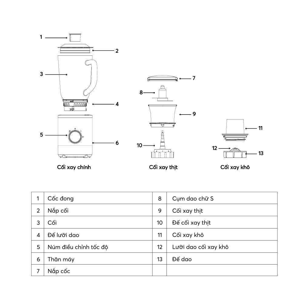Công dụng: Xay thực phẩm, xay thịt, xay khô, xay sinh tố