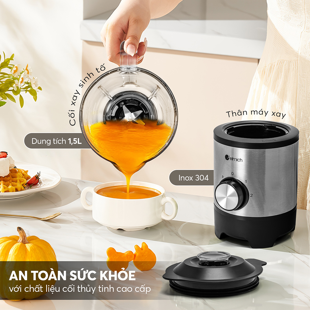 Tích hợp cối xay lớn dung tích lên tới 1500mL, cho phép người dùng chuẩn bị một lượng lớn sinh tố hoặc đồ uống mỗi lần.