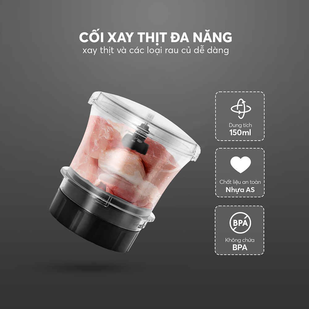 Dung tích tới 150mL, giúp xay được nhiều thịt hơn.