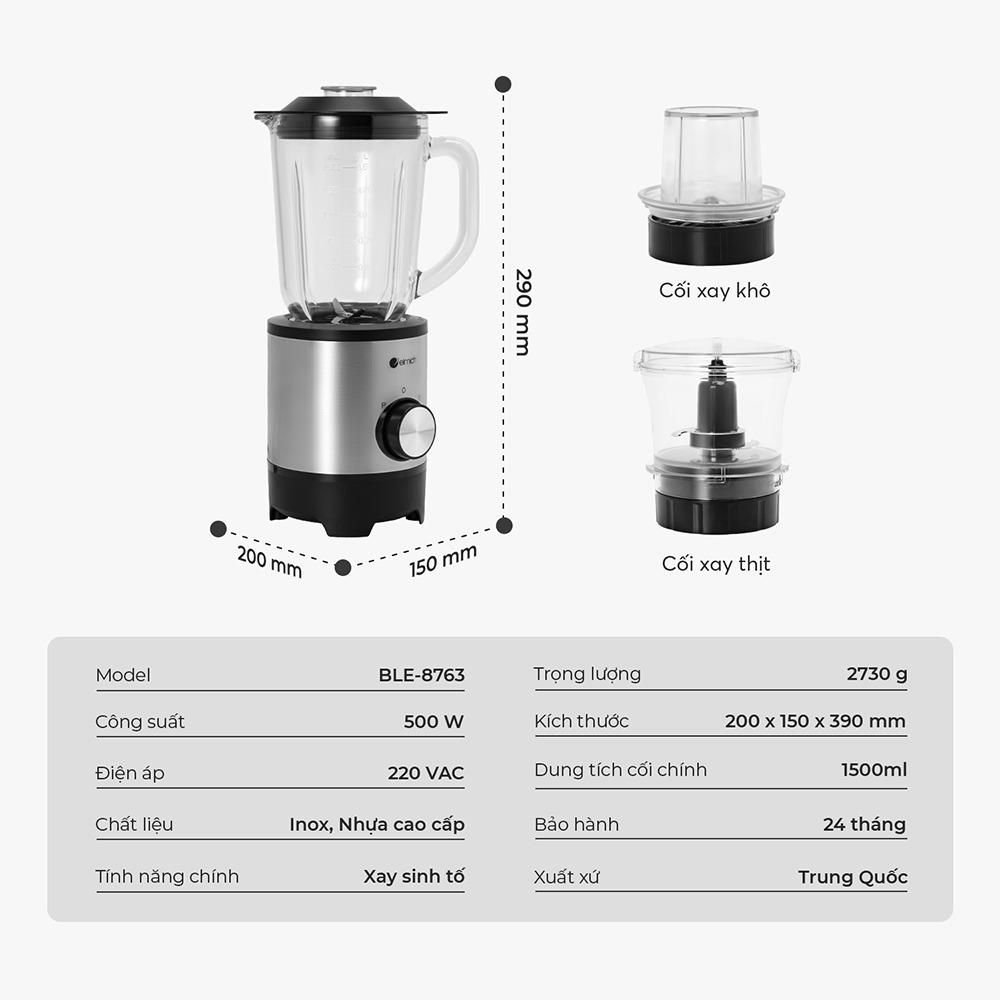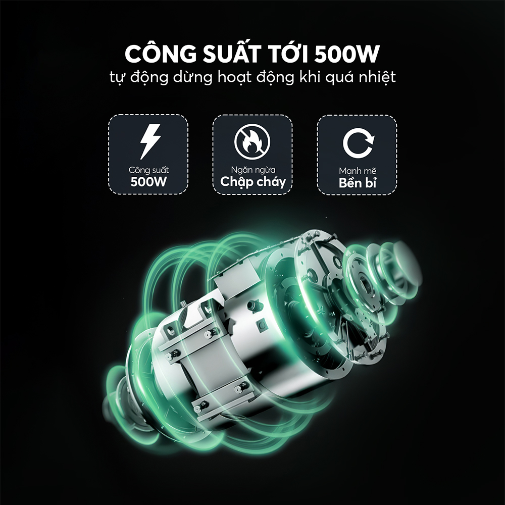- Công Suất Mạnh Mẽ: Công suất mạnh mẽ lên tới 500W, đảm bảo khả năng xay nhanh chóng và hiệu quả