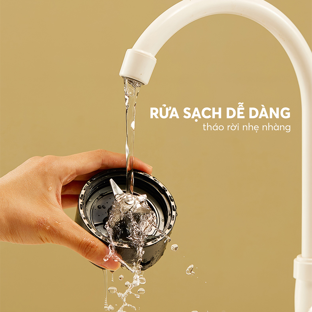 Sử dụng vật liệu dễ lau chùi, thân cối dao xay dạng rời, dễ dàng tháo lắp và vệ sinh.