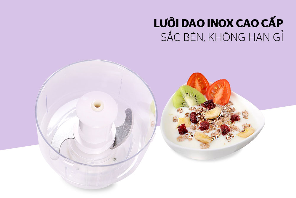 Mỗi cối xay đều được trang bị lưỡi dao từ inox sắc bén giúp xay thực phẩm cực nhanh, cực nhuyễn. Chất liệu này không han gỉ, hạn chế mài mòn, an toàn với sức khỏe.