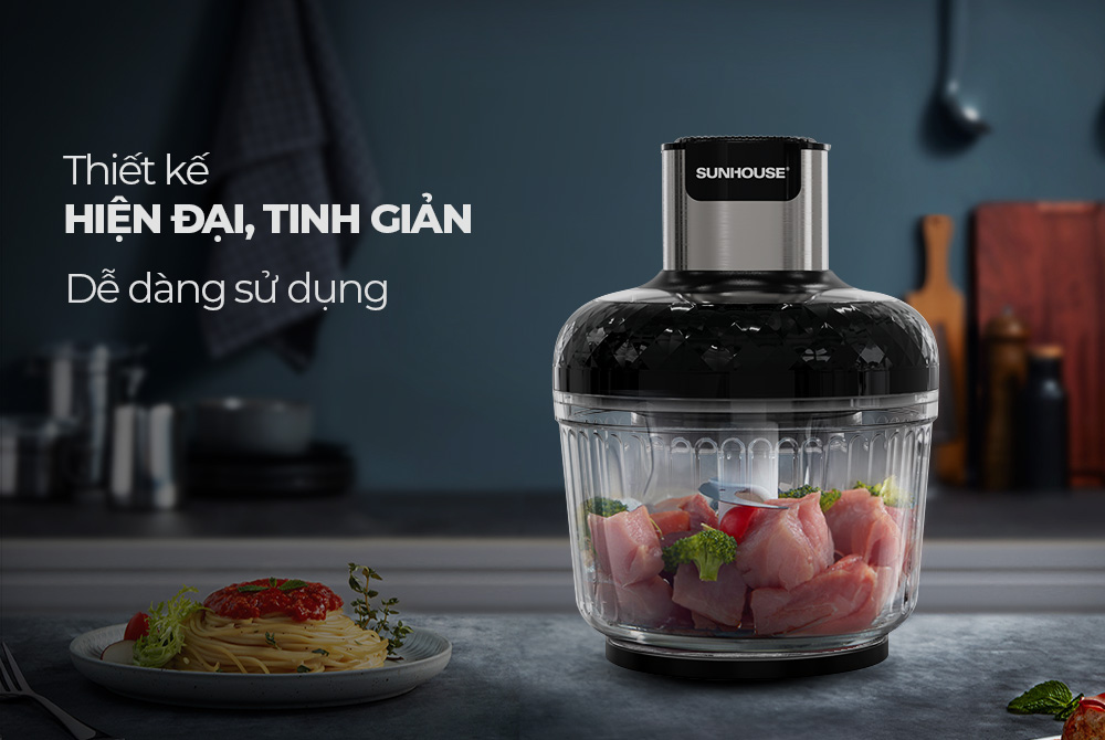 Máy xay thịt SUNHOUSE SHD5412 có thiết kế màu đen tối giản, hiện đại, phù hợp với mọi không gian bếp. Cối xay bằng chất liệu thủy tinh cao cấp, bền bỉ và an toàn tuyệt đối cho sức khỏe.