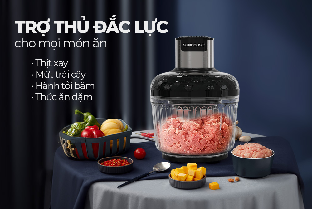 Chức năng: Xay thịt cá, hành tỏi, xả ớt