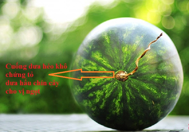 Những quả dưa già (dấu hiệu cho dưa đỏ - ngọt), thường có phần cuống nhỏ và héo khô. Trong khi, những quả dưa non thì cuống vẫn còn tươi xanh, khó có thể bị teo lại, và chứng tỏ quả dưa ấy được thu hoạch sớm.