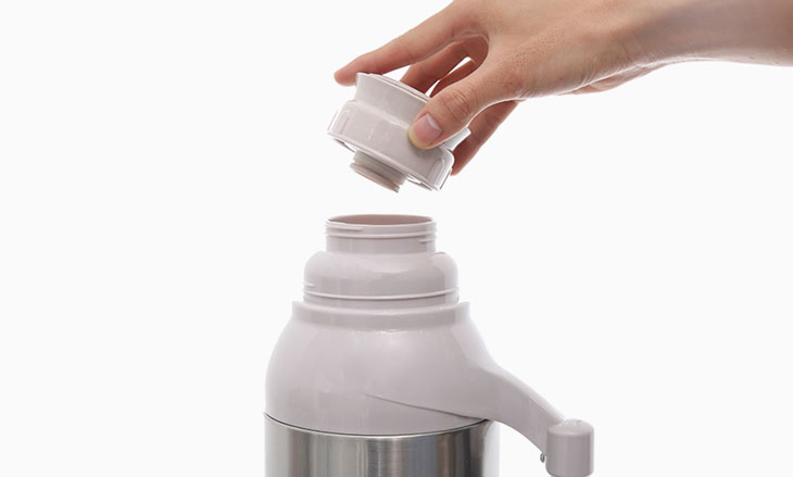 Lưu ý là khi làm sạch nên làm sạch bằng tay, không dùng máy rửa chén vì máy khó loại bỏ hết các vết bẩn trong các khe, rãnh trên bình và hơi nóng có thể làm hỏng lớp cách nhiệt, ruột thủy tinh của sản phẩm.