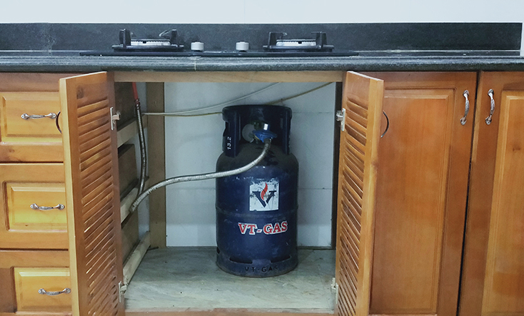 - Không đặt bình gas trong tủ hộc bếp kín: Đây là trường hợp thường thấy trong nhiều hộ gia đình. Để tăng tình thẩm mỹ cho căn bếp nhiều gia đình đặt bình gas trong hộc bếp kín, nhưng đây chính là lý do làm cho gas dễ rò rỉ và cháy nổ. Bạn hãy để bình gas ở nơi thoáng khí, nhằm đảm bảo an toàn khi sử dụng.