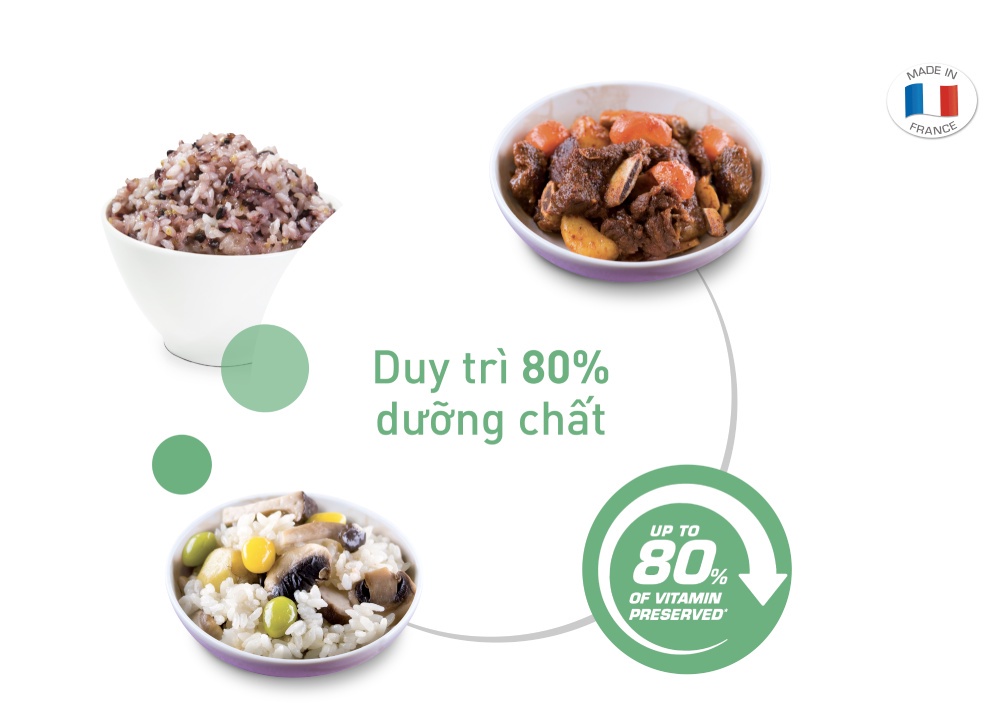 Điều khiển nấu ăn 2 cấp độ: cấp độ chuyên sâu (117 ° C, ví dụ như thịt và cá) hoặc cấp độ nhẹ nhàng (112 ° C, ví dụ: rau, gạo, khoai tây)