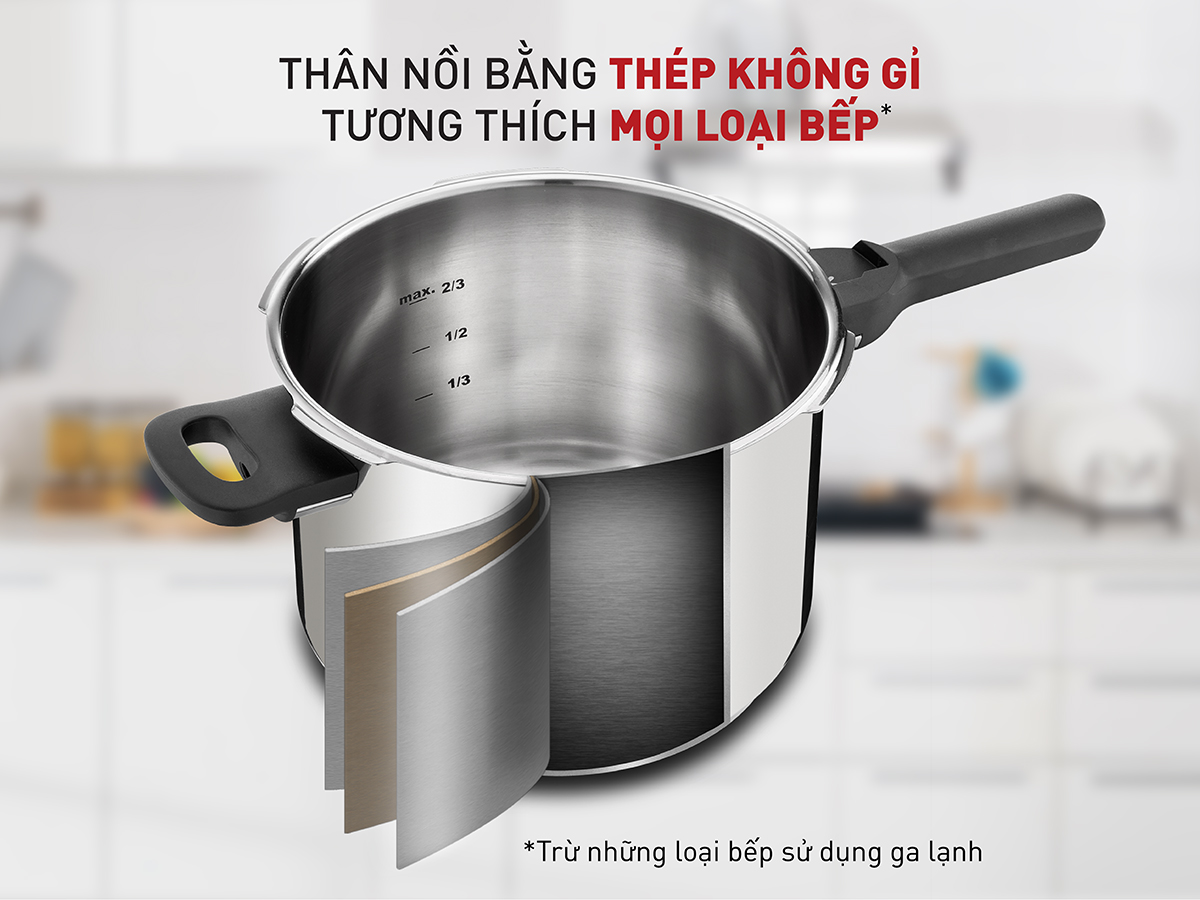 Nồi áp suất cơ Tefal có dung tích 6 lít phù hợp sử dụng cho các gia đình để ninh hầm thực phẩm, nấu cháo, nấu chè đậu...
