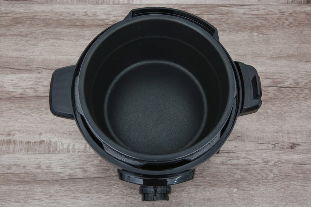 Lòng nồi áp suất dày 2.3 mm, bằng hợp kim nhôm phủ lớp chống dính có độ bền cao, nấu ăn an toàn, không tiết ra chất độc hại, hạn chế dính cháy, dễ làm sạch