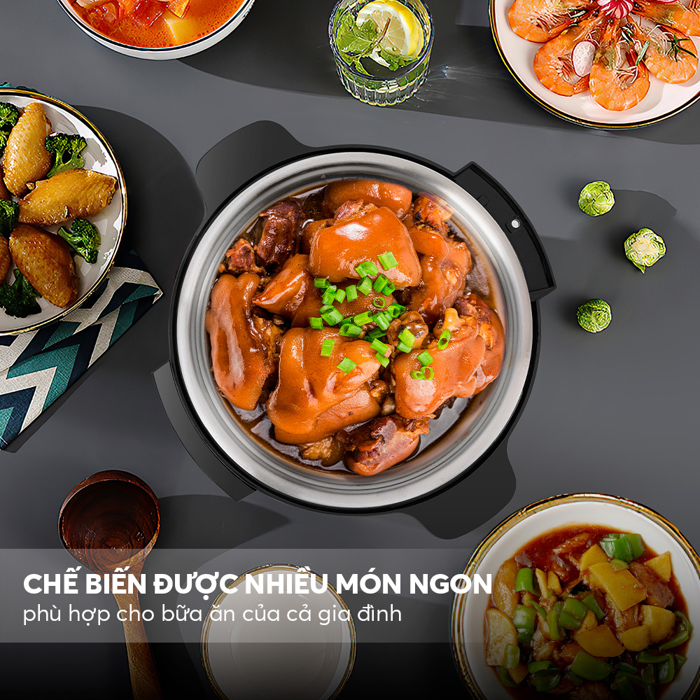 - Công suất 1000W – Tiết kiệm thời gian: Giúp nấu nhanh chóng, tiết kiệm đến 50% thời gian so với các nồi áp suất thông thường.