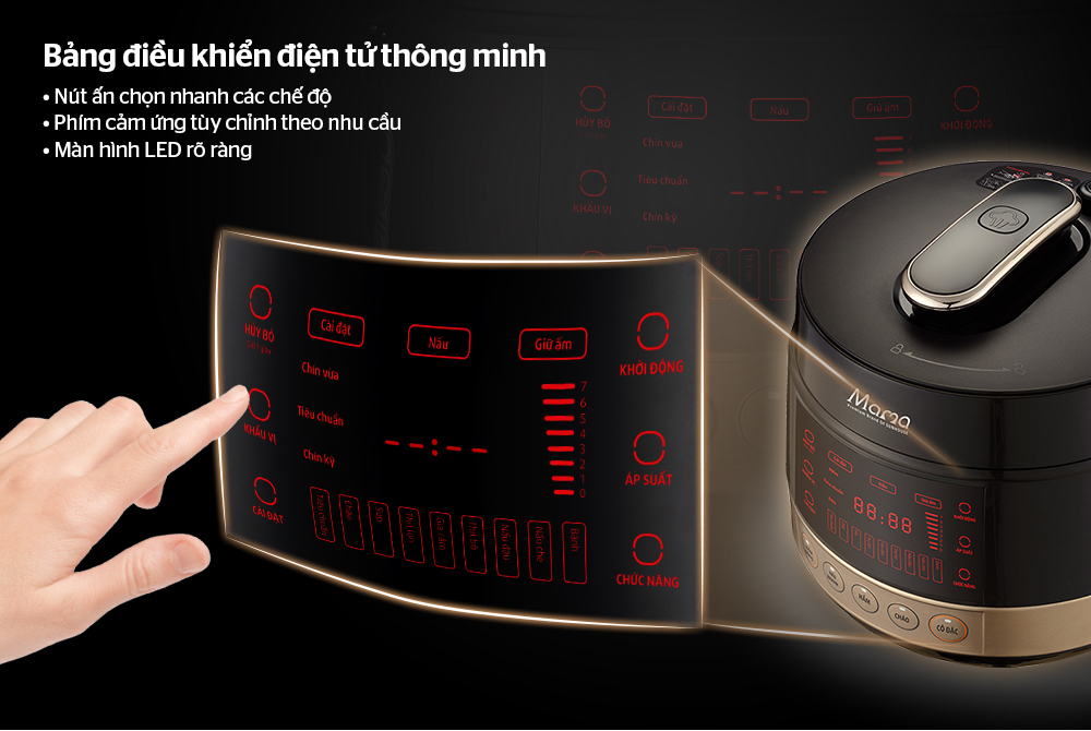 Nồi áp suất điện tử đa năng SUNHOUSE MAMA SHD1585B mang lại tính tiện dụng cao, là sự lựa chọn hoàn hảo khi bạn cần chuẩn bị những bữa tiệc dành cho gia đình và bạn bè mà không mất quá nhiều thời gian. Sản phẩm có thiết kế hiện đại, đặc biệt là chi tiết lòng nồi dạng niêu bổ trợ hữu hiệu cho quá trình ninh hầm thực phẩm.