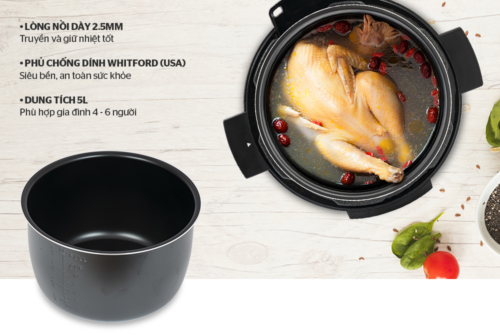 - Lòng nồi chống dính cao cấp, an toàn cho sức khỏe